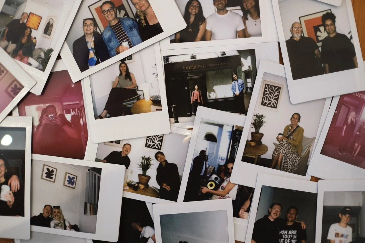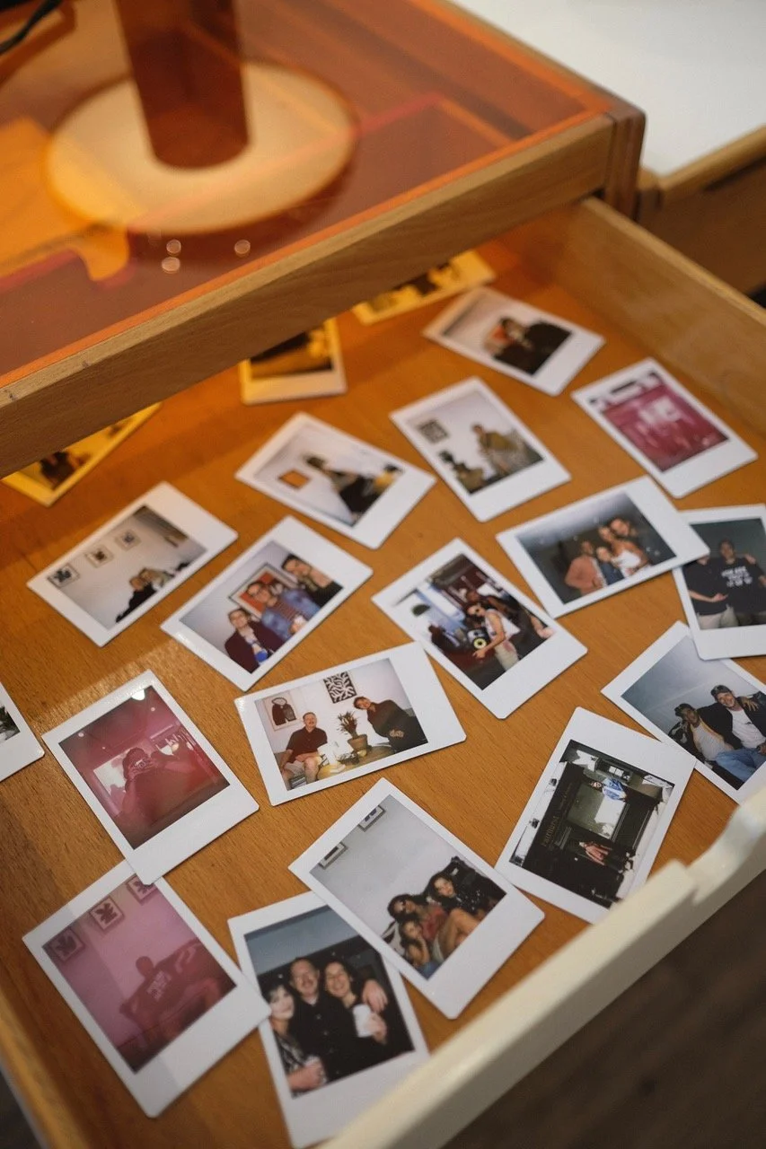 Their cameras have been a key part of my creative practice, helping me capture the shapes, colors, and textures that inspire my work. For this show, Fujifilm cameras weren’t just tools for documentation—they enhanced the experience. Instax cameras were set up for guests to take portraits in the space, often posing with the sculptures or relaxing on the Ligne Roset Togo sofa. These instant photos became mementos for visitors and part of the installation itself, displayed on a vintage perspex-topped table that evolved into a spontaneous photo gallery.