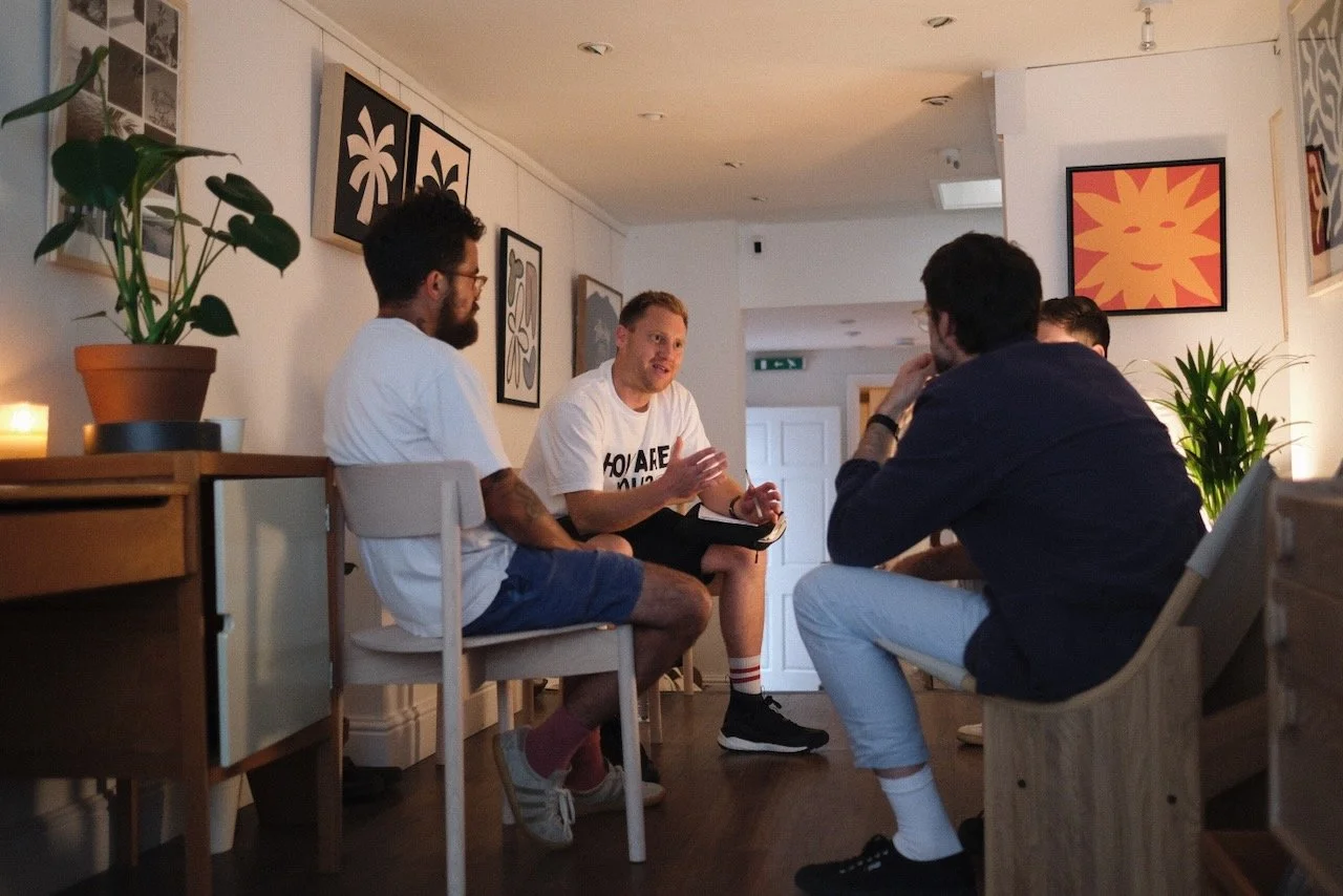 The gallery also hosted Talk Club evenings, where groups of men came together over kombucha, beer, and pizza to share their experiences. These gatherings reminded me how essential spaces for open dialogue are and reinforced the importance of holding space for connection and support.